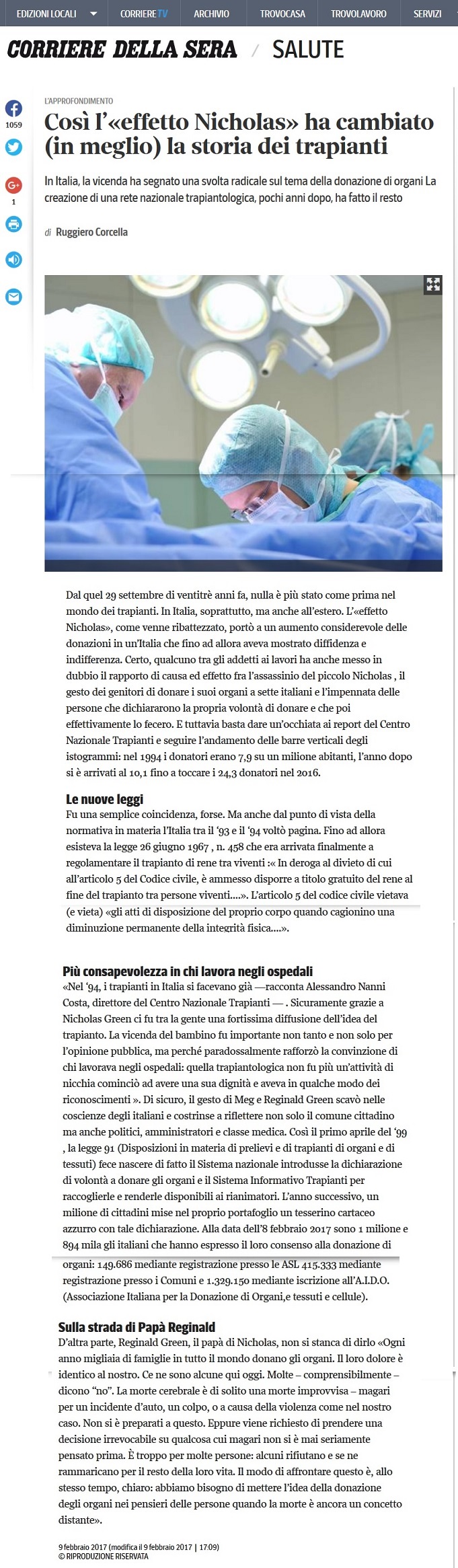 At the hospital in Sicily, my wife, Maggie, and I decided to donate Nicholas’ organs and corneas for transplant. They went to seven very sick Italians, four of them teenagers.