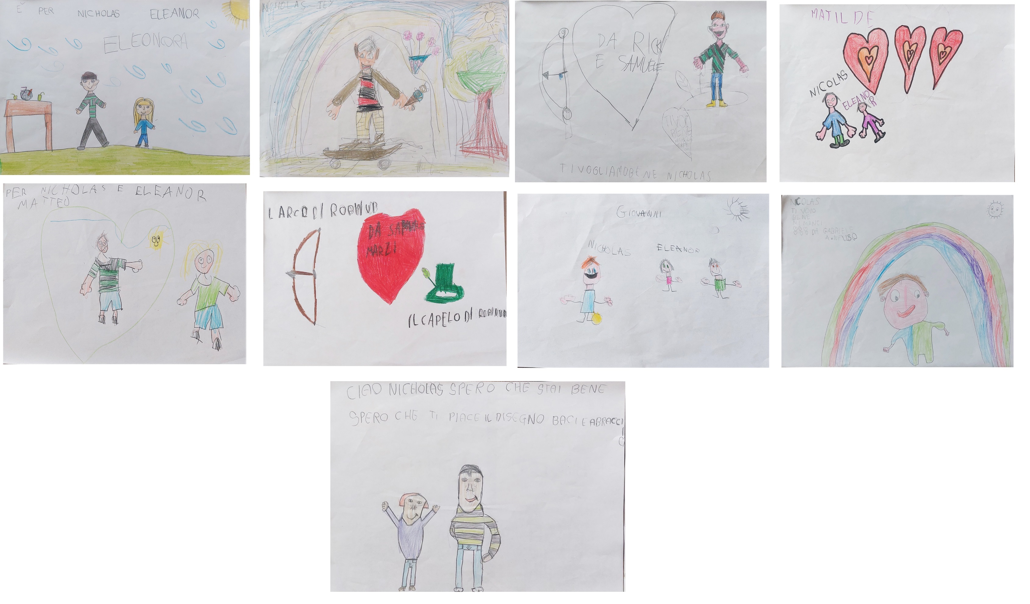 My name is Simone and I’m Italian. I am a teacher in a primary school near Milan. Last Thursday I told Nicholas’ story to my students. They are 7 years old, the same age Nicholas was when he came to Italy. I showed them the “Nicholas Effect” video and many pictures of Nicholas. I explained to them that Nicholas is now a new friend of them. Nicholas is a very special friend, because he is their age (7) but he is also my age: I was born in 1987, too. The children have made me understand that they already love Nicholas. Every child has created a drawing to honor Nicholas’ memory. I would be happy to photograph the drawings and send them to you via email. Do you think this could be possible? Thank you for your attention……………