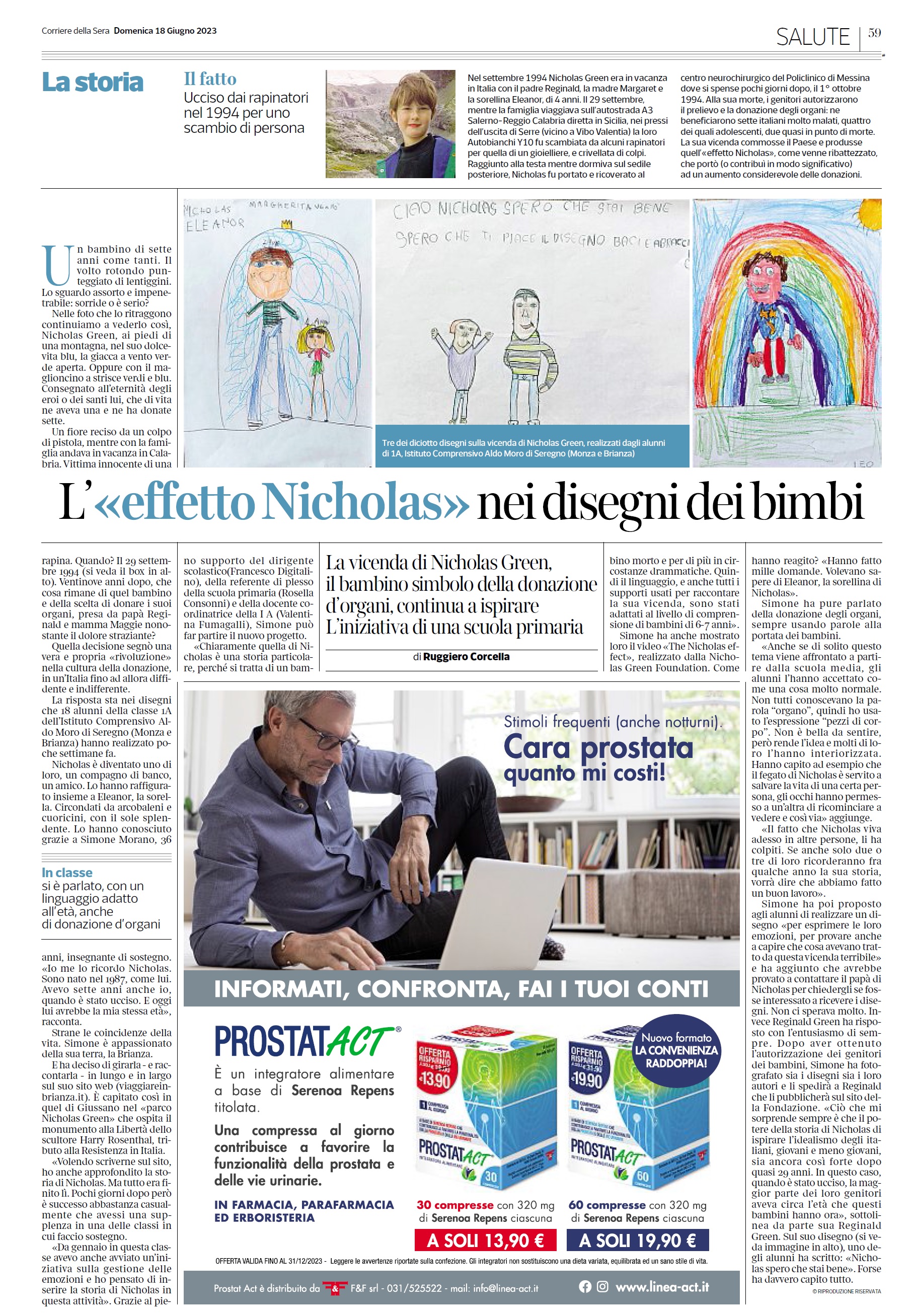 When? On September 29, 1994. Twenty-nine years later, what endures of that child and the choice to donate his own organs, made by his dad Reginald and his mom Maggie through excruciating pain? That decision marked a real “revolution” in the culture of giving, in an Italy until then suspicious and indifferent. The answer lies in the drawings that … pupils of class 1A of the Aldo Moro primary school of Seregno made a few weeks ago. Nicholas became one of them, a classmate, a friend. They depicted it together with Eleanor, his sister. Surrounded by rainbows and little hearts, with the shining sun. They came to know him thanks to Simone Morano, 36 years old, a teacher’s aid.