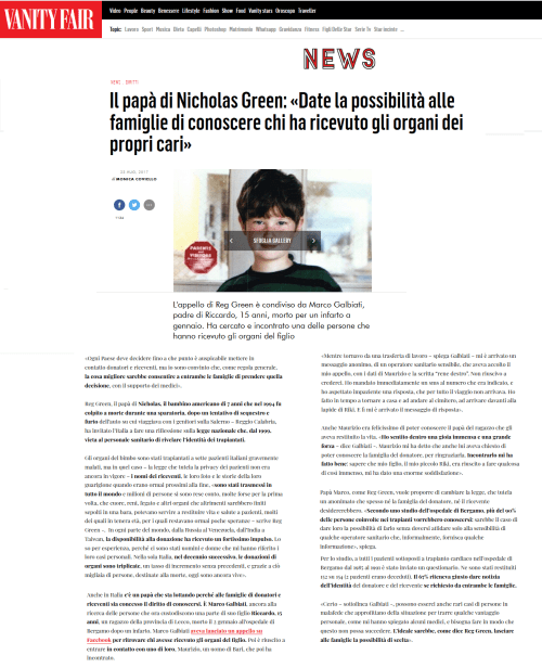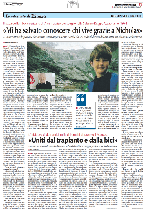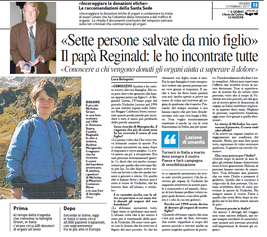 “Reginald Green campaigns to change the law on transplantation in Italy. I would like that also in your Country the donor family and the recipients could meet.”