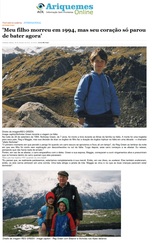 “He lived with Nicholas Green’s heart. He died after 22 years”